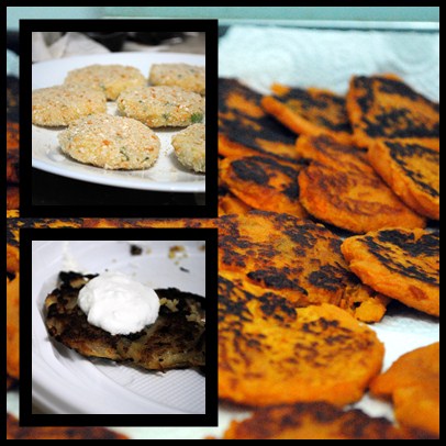 yum. i went to a latke party this weekend and there were original, sweet potato, curry butternut squash, carrot ginger and apple brandy latkes. also an array of dips and relishes, with my favorite being a celery cilantro. yum, yum, yum.
