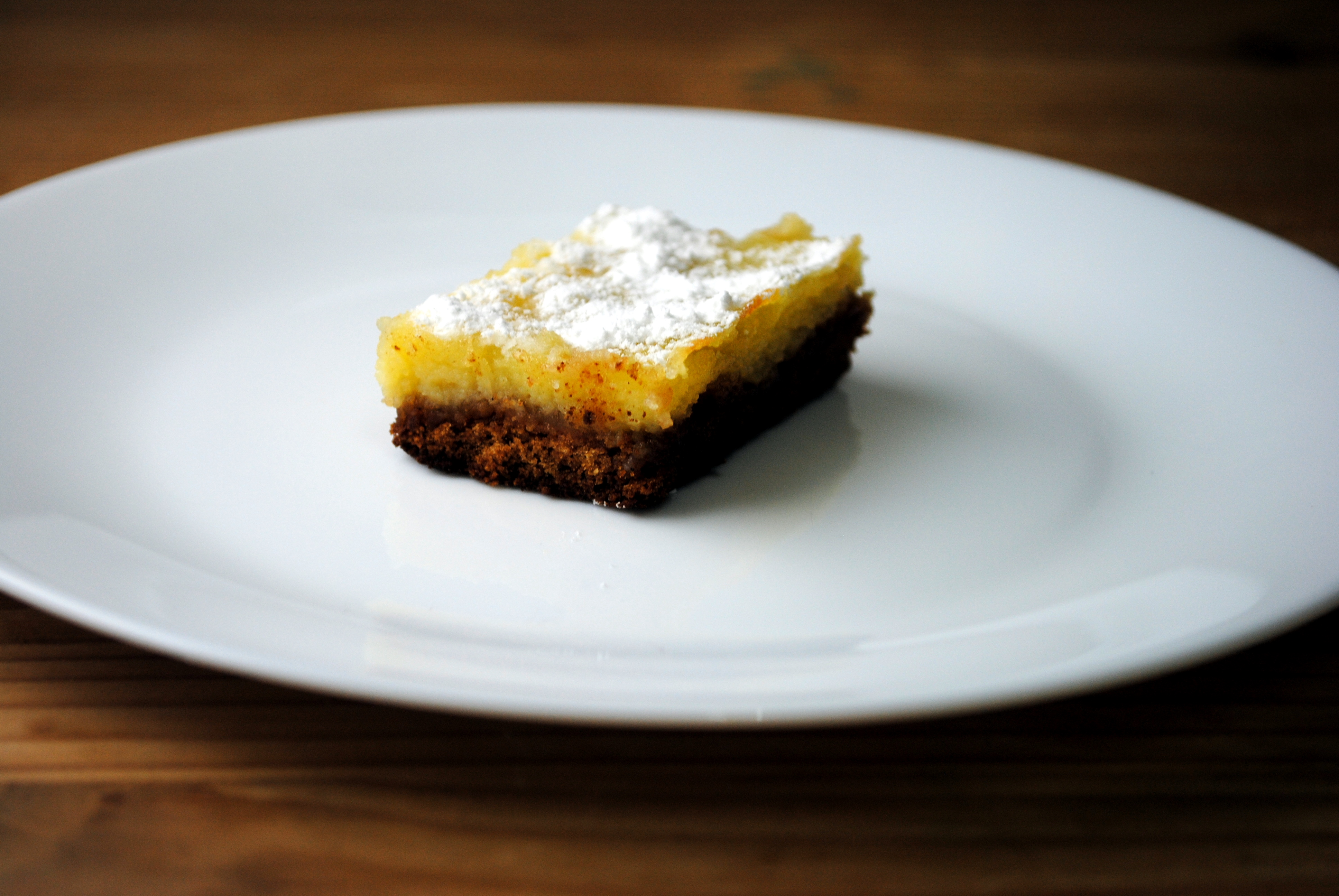 I don’t eat lemon bars often. They’re about as bad for you as a dessert can get – they consist primarily of egg yolks, sugar, butter, and heavy cream, plus, of course, lemon. But that’s also probably why they’re so darn good. Also, I have yet to make a perfect batch. In my current oven I overcooked the shortbread slightly, but this oven doesn’t fare well with baked goods. And when I slice them, they never come out picture perfect. But they taste just divine.