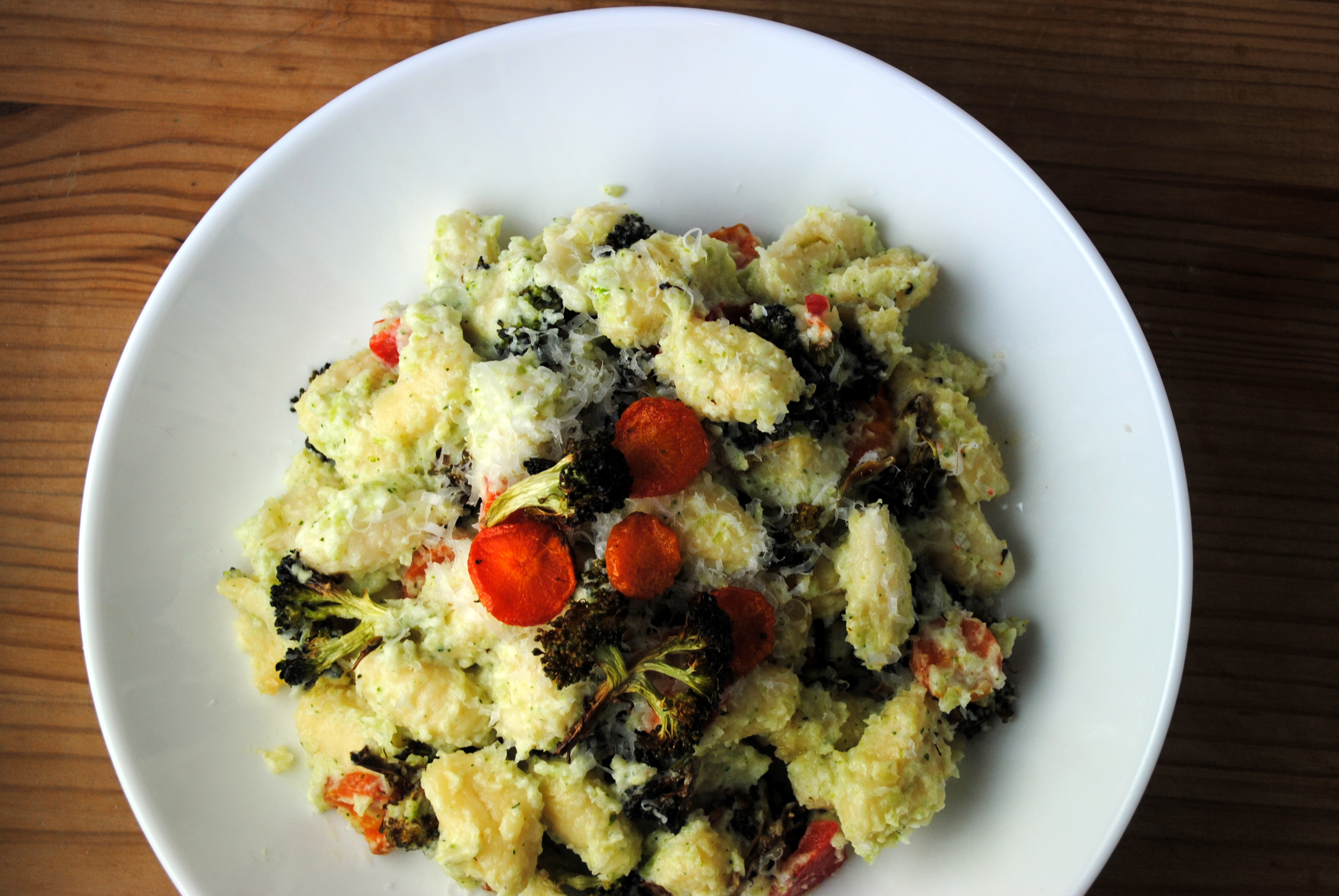 I had fresh gnocchi in my freezer so used that, but I think something sturdier like penne or even spaghetti would be an even better vehicle for the thick broccoli and mascarpone. Really You can just make the sauce and omit the other roasted vegetables, but they do add some nice texture.