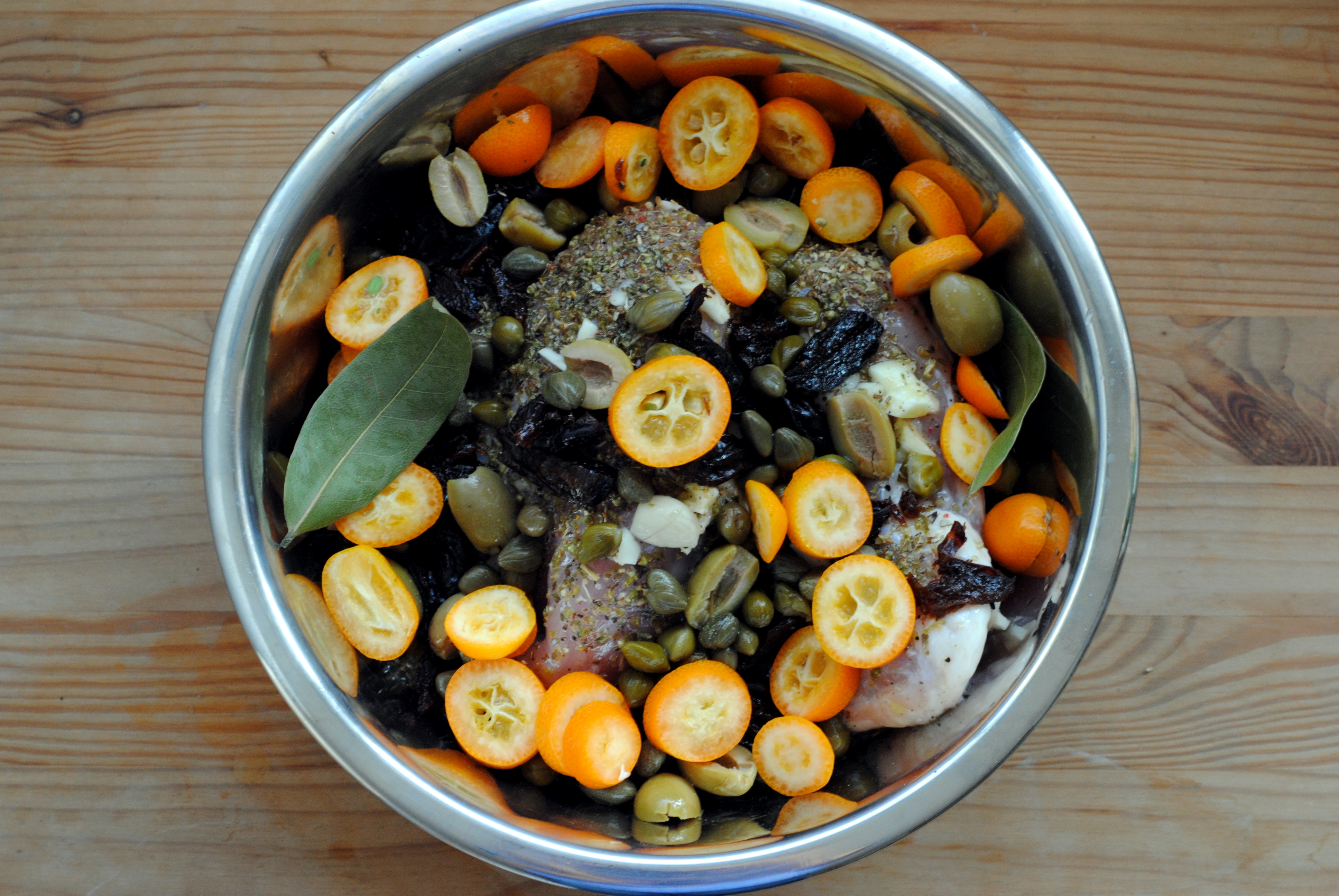 An invention of the 1982 Silver Palate Cookbook, Chicken Marbella has been a perennial dinner party favorite ever since. For those unfamiliar, the dish is a startlingly good combination of olives, capers, prunes, oregano, garlic, red wine vinegar, brown sugar, and white wine. Continue reading “Marbella, Meet Kumquat”