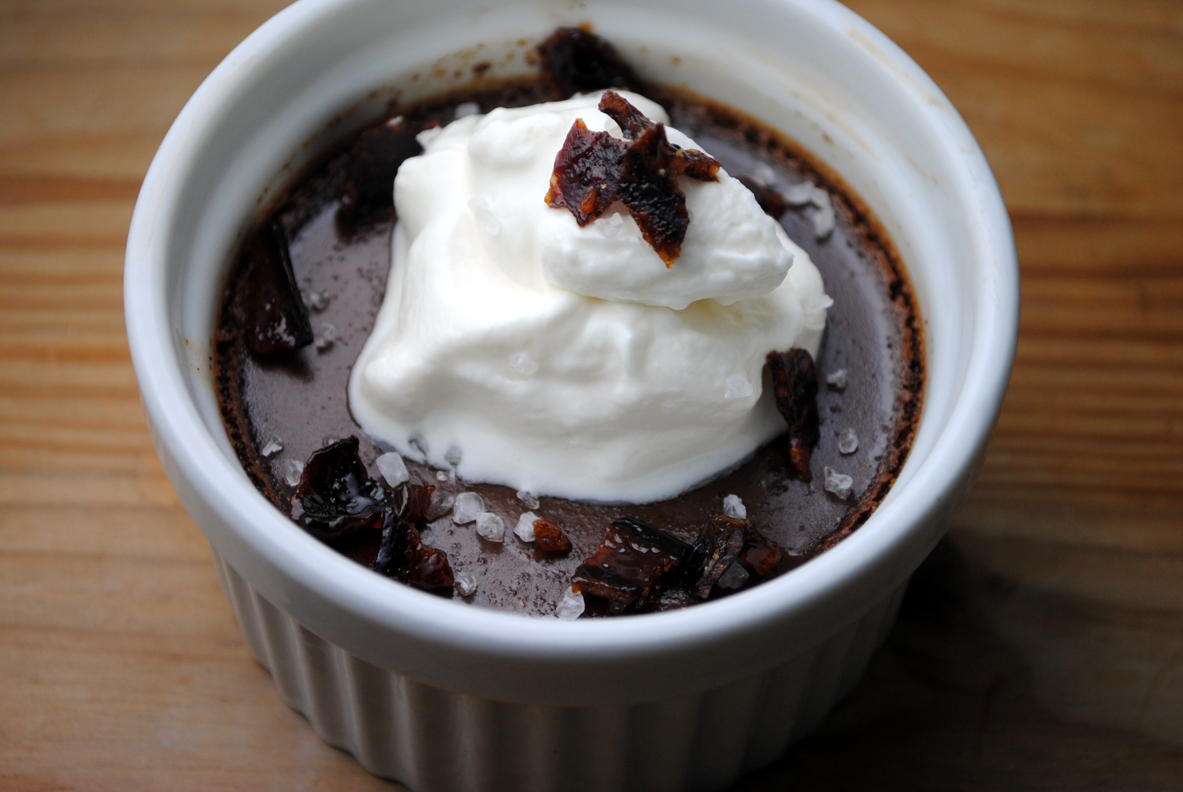 Spiced Pots de Créme with Candied Bacon and Maple Cream